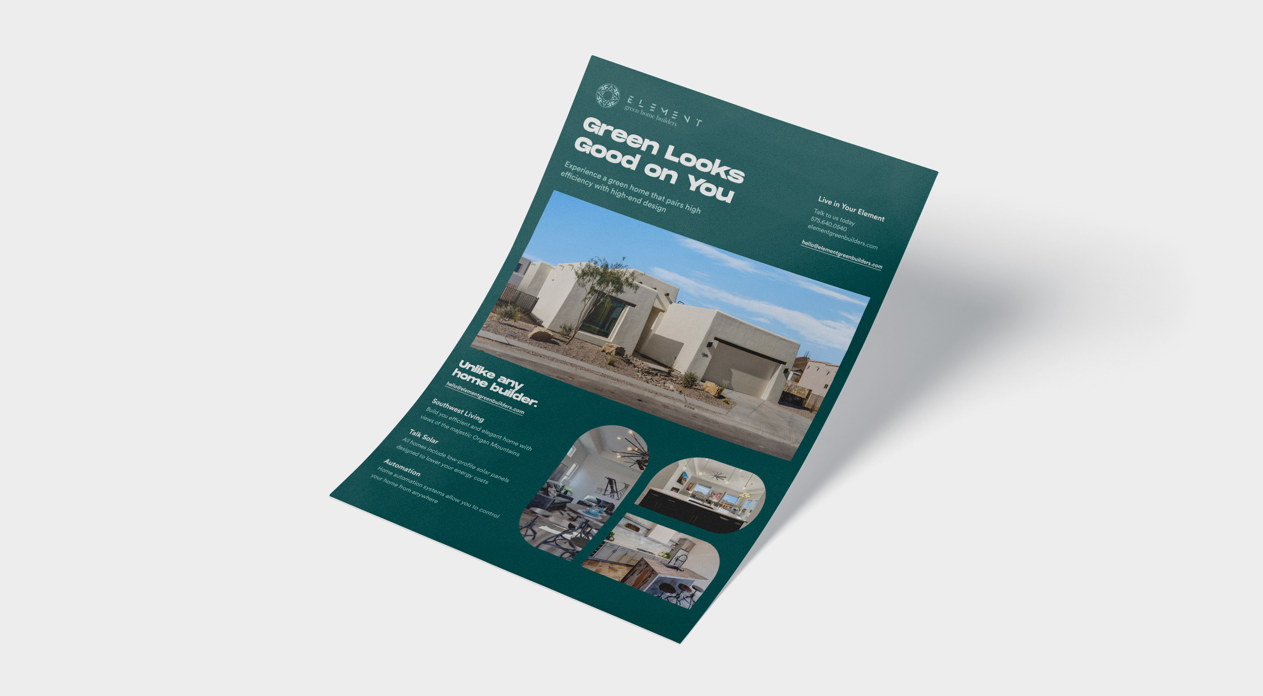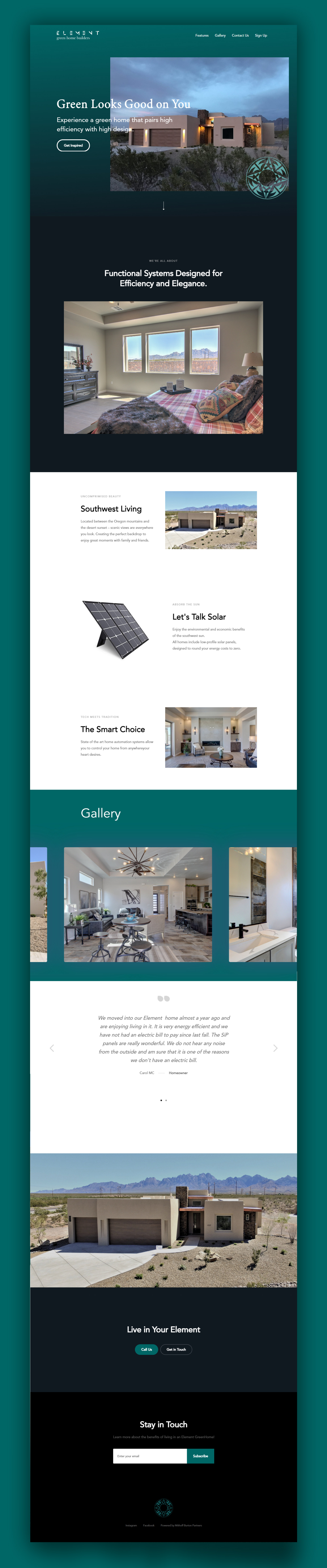 Element Green Home Builders are a group of developers focused on a green homes that pairs high efficiency with high design.Following strict orders from the client we landed on a brand that follows closely resembles old native new-mexican pottery.
